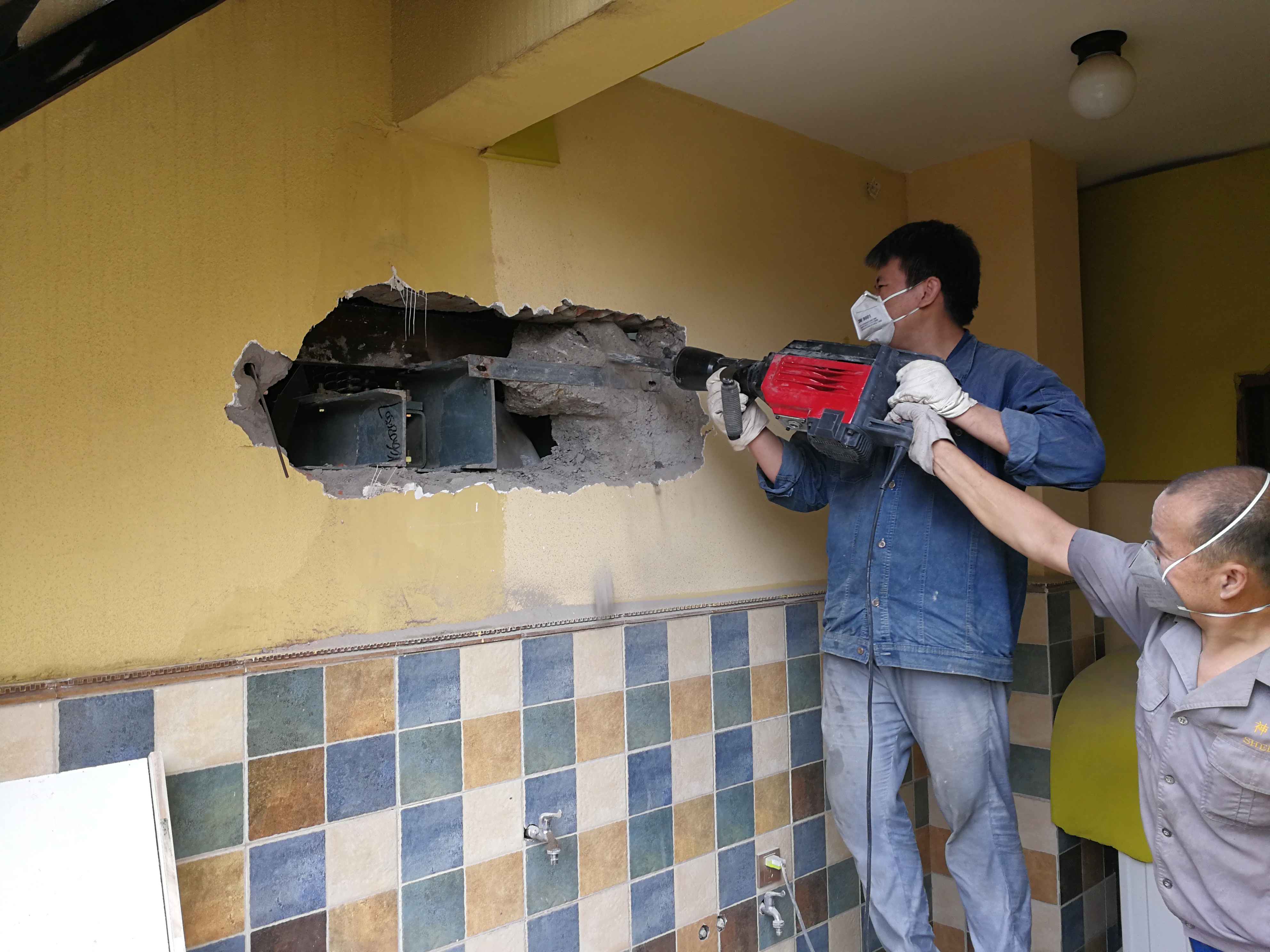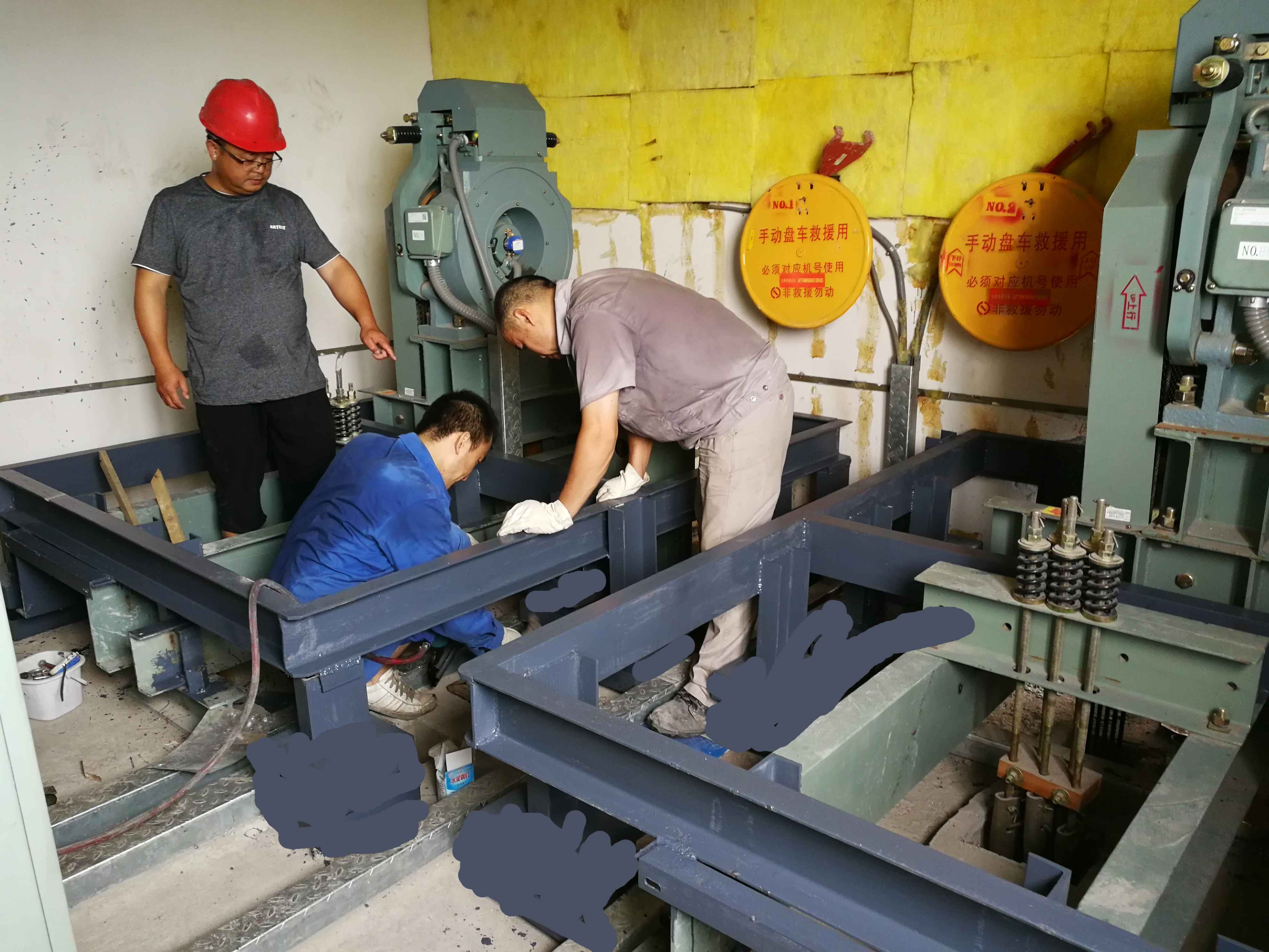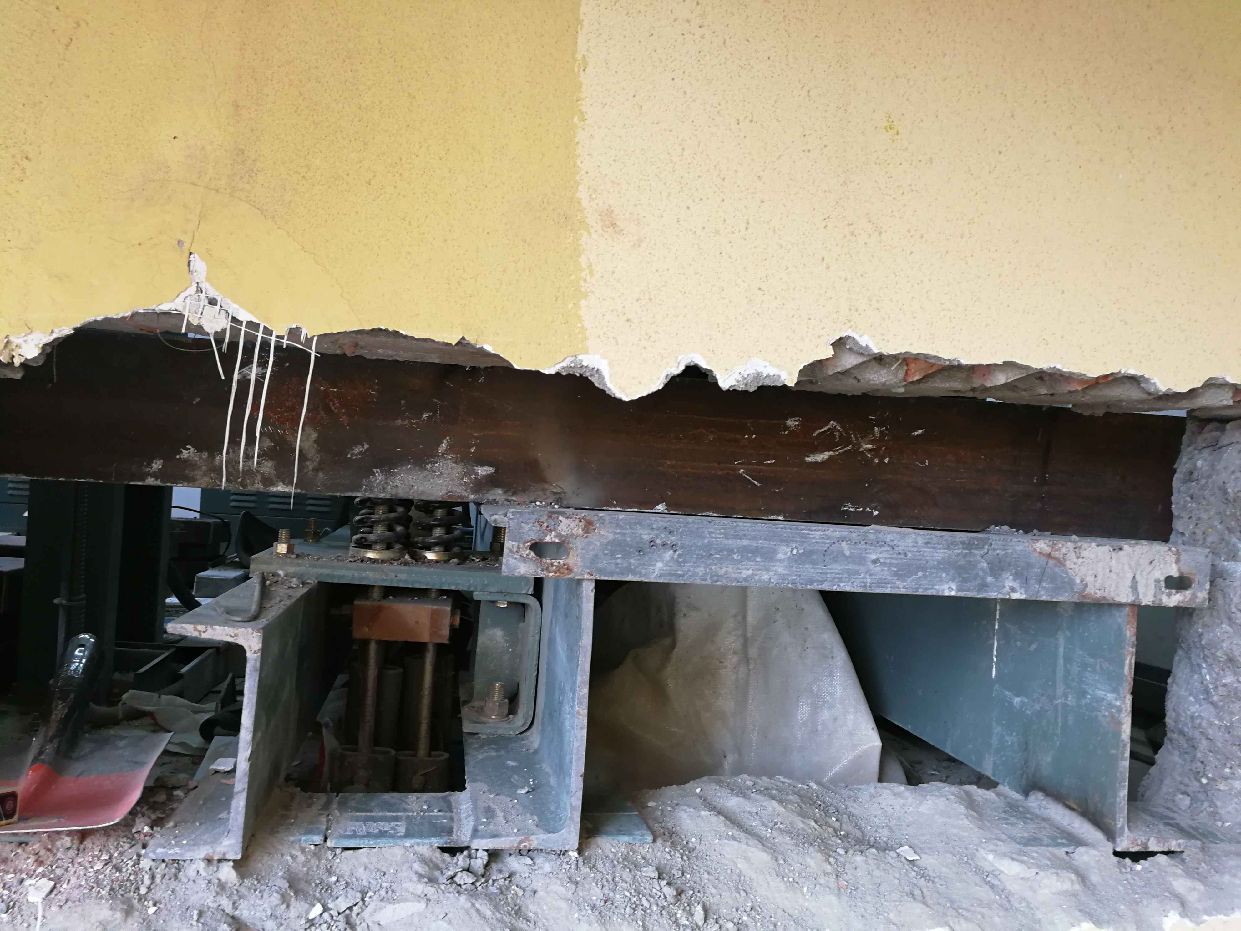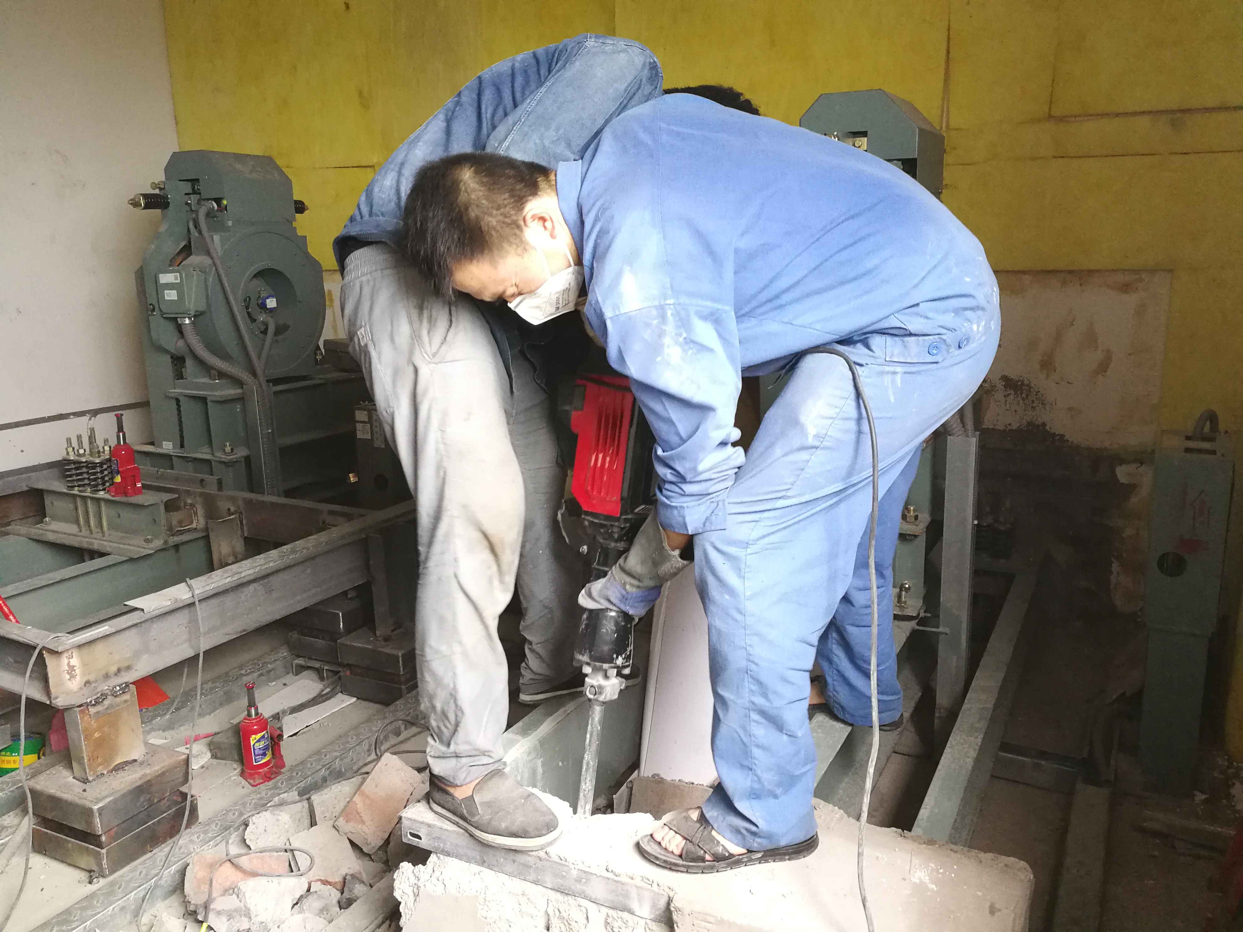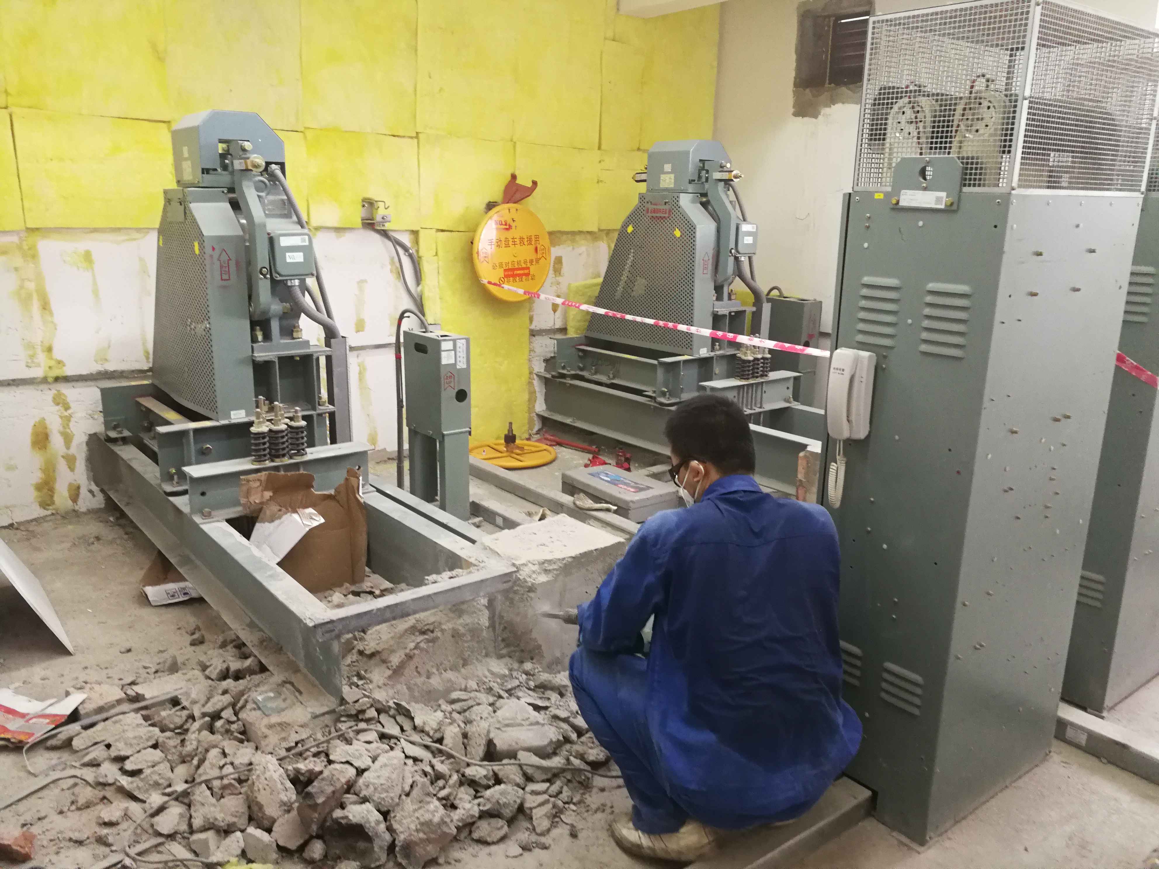 3、在電梯主機原有底梁與墻體諒解部分,采用等離子切割方式,使其不與墻體連接,并將原有梁墩拆除,目的是讓電梯主機系統(tǒng)徹底不與墻體和地板直接接觸。?