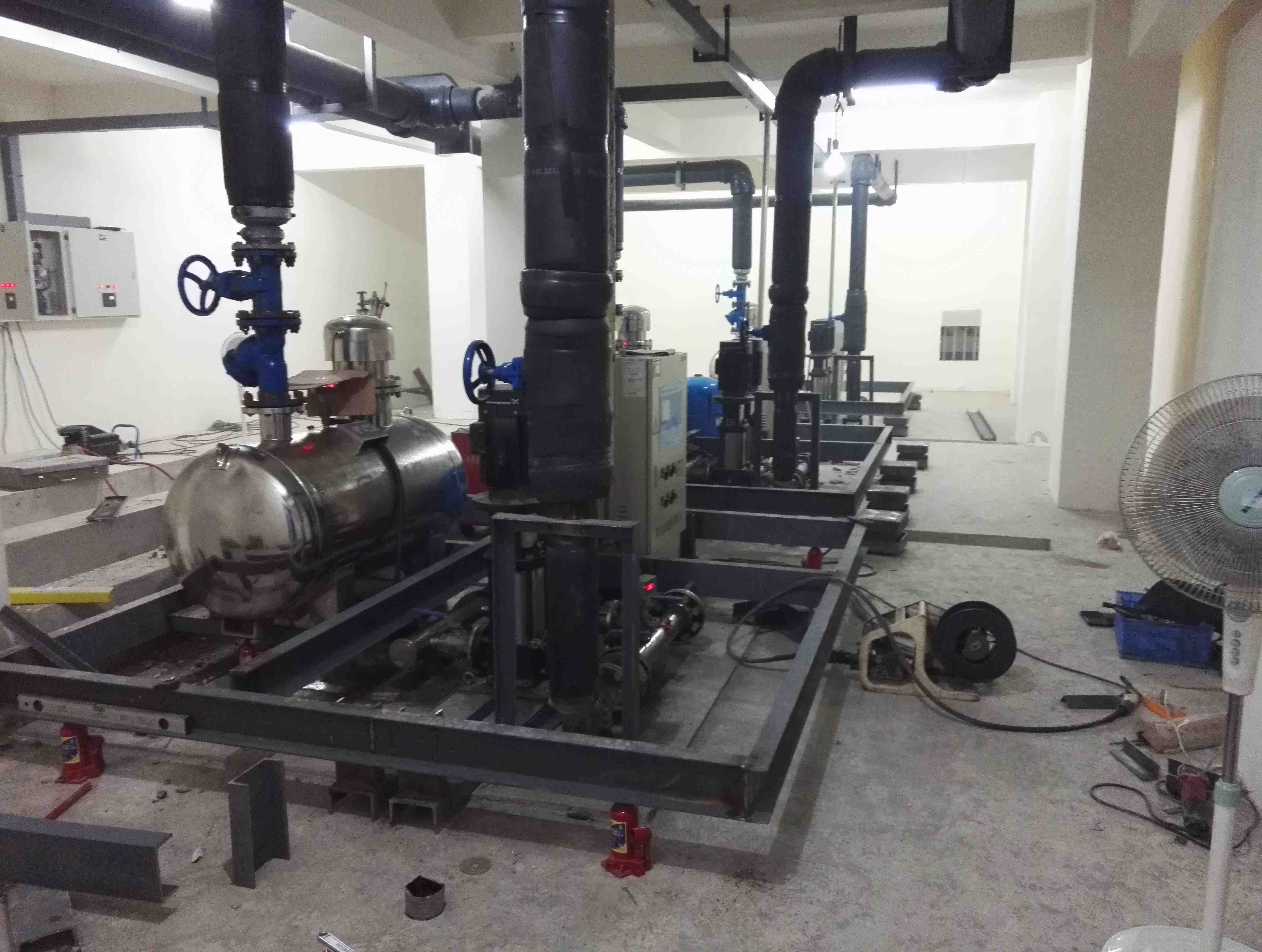 成都金欣苑小區(qū)水泵房總共有三套水泵機(jī)組,位于地下室負(fù)二樓(地下室共負(fù)三樓,均不同程度出現(xiàn)低頻噪聲,機(jī)組運(yùn)行時(shí)產(chǎn)生的低頻振動(dòng)噪聲和供水管道的低頻振動(dòng)噪聲順著四周墻壁、柱頭向樓上傳遞,干擾業(yè)主的正常休息,受該公司邀請(qǐng),我們成都鼎三豐環(huán)保工程有限公司聲學(xué)工程師與甲方工程師對(duì)現(xiàn)場(chǎng)進(jìn)行了實(shí)際勘察,在地下室機(jī)房里感覺(jué)噪聲并不特別大,但地面、墻體發(fā)麻,基礎(chǔ)振動(dòng)明顯,業(yè)主反映上午午?7:00~8:00,夜間?22點(diǎn)-24?點(diǎn)噪聲明顯,一直影響到3樓住戶。