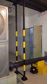 3、在水管與墻體連接部分,掏空墻體,讓管道與墻體分開,不能接觸,并改裝成支撐連接方式,其下根據(jù)振動頻率設(shè)計安裝DSF-2水泵專用隔振器(根據(jù)實際情況,由于水泵房噪聲相對不嚴(yán)重,影響1-2樓,出于成本控制,選用經(jīng)濟型)。?
