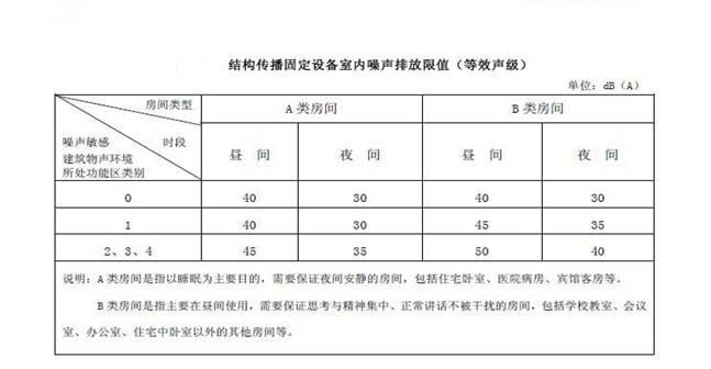 以結(jié)構(gòu)傳播固定設(shè)備室內(nèi)噪聲排放限值為例,我們確保樓上業(yè)主房間內(nèi)按夜間小于30分貝為基本目標(biāo),(要求背景噪聲為27分貝以下),爭取實現(xiàn)小于28分貝為理想目標(biāo),(要求背景噪聲為25分貝以下)。本噪聲治理項目均為業(yè)主房間受水泵房噪聲影響降低為目標(biāo),其他噪聲影響不在治理范圍內(nèi)。